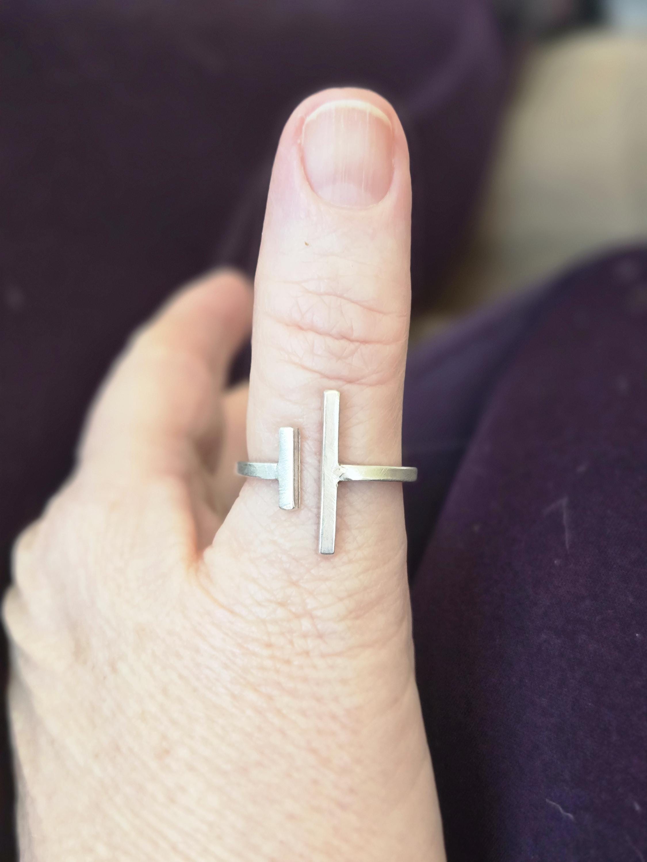 Edgy minimal adjustable ring, made from 2 mm square sterling silver wire.