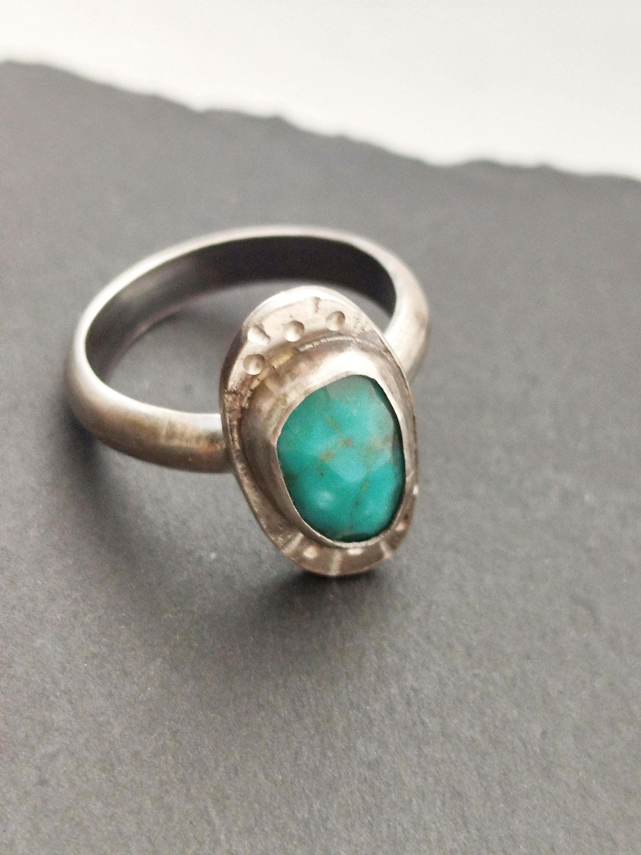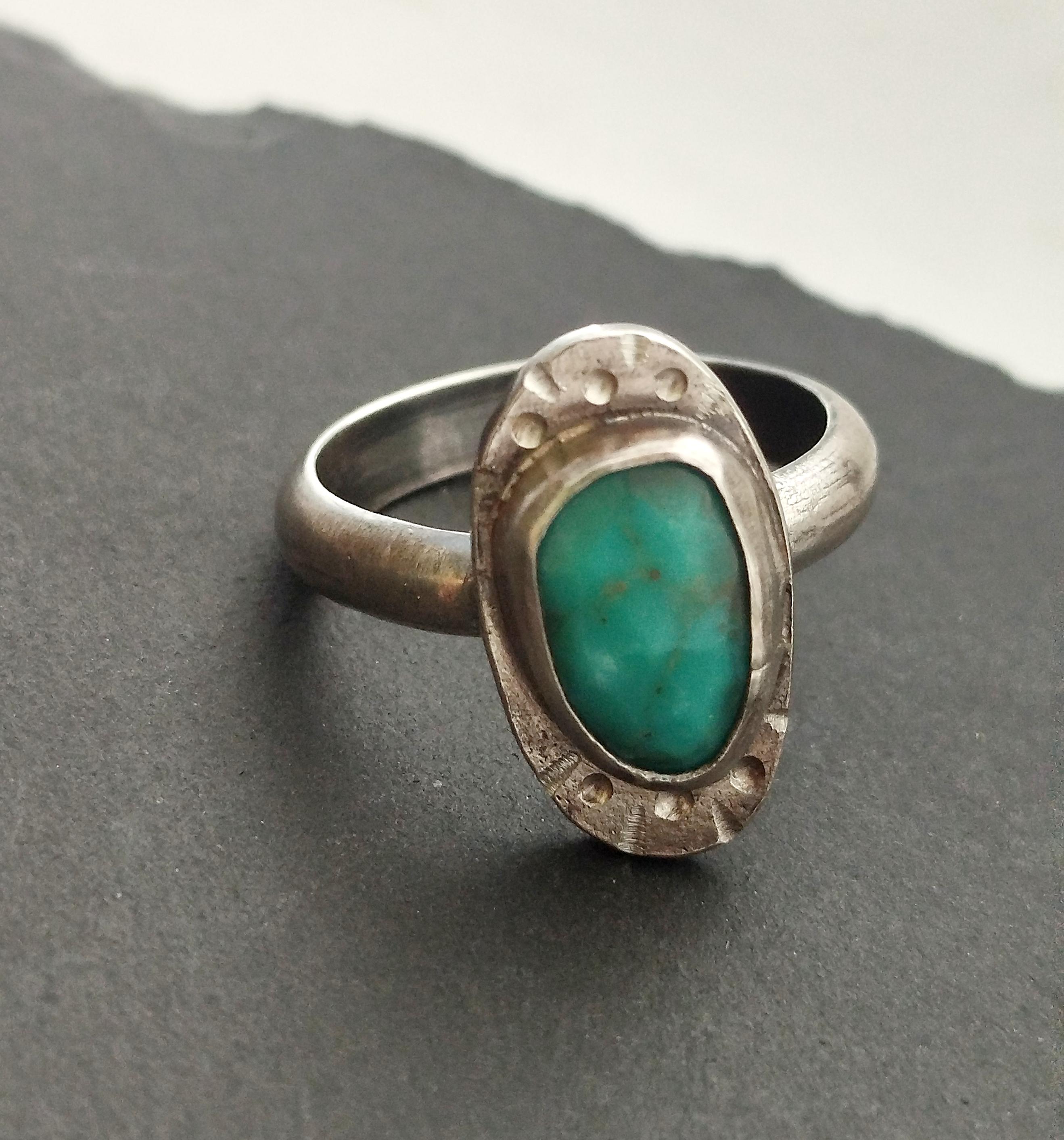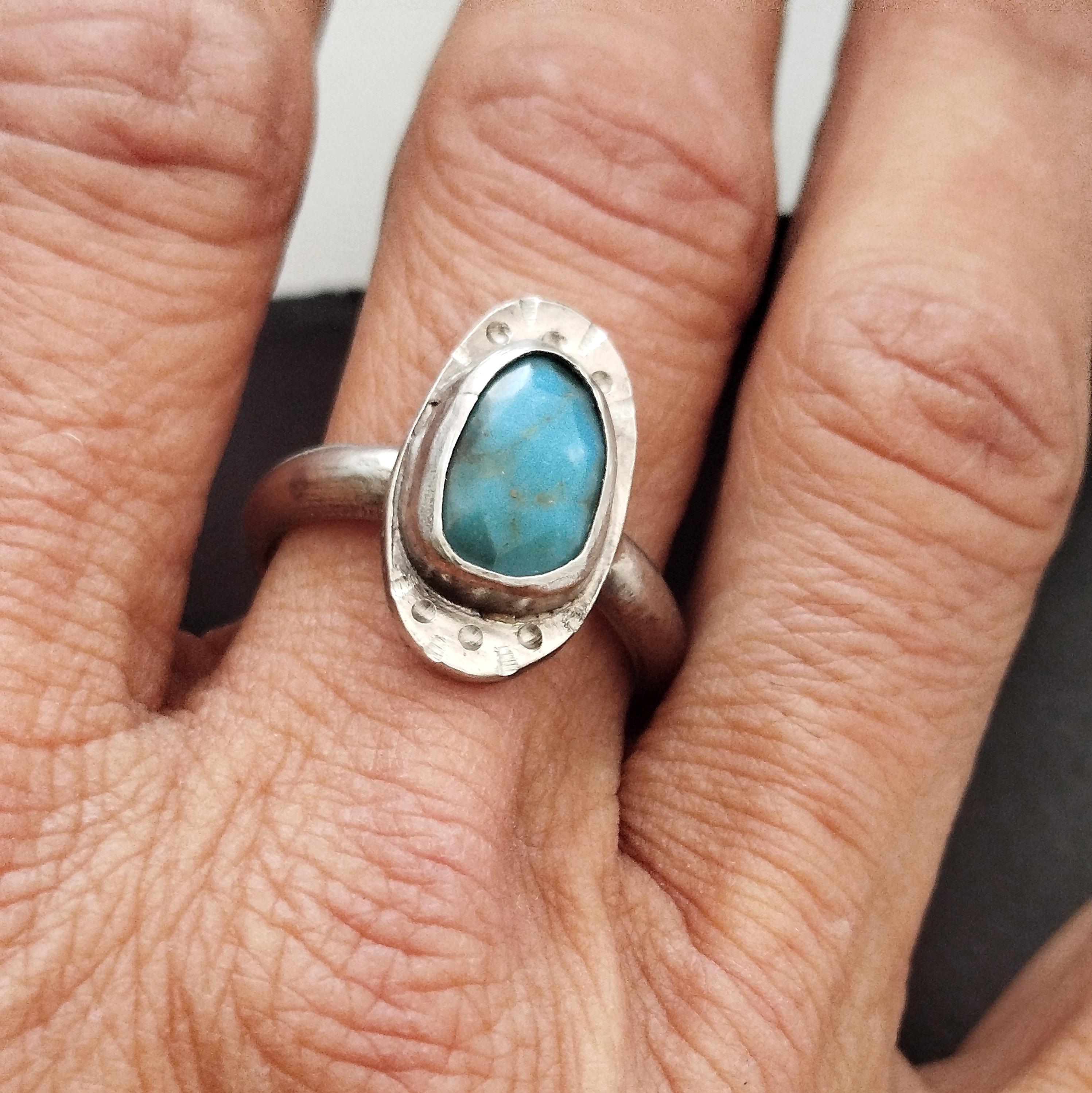 Handmade Silver Ring with Natural Turquoise, December Birthstone for Protection, Serenity and Spiritual Strength