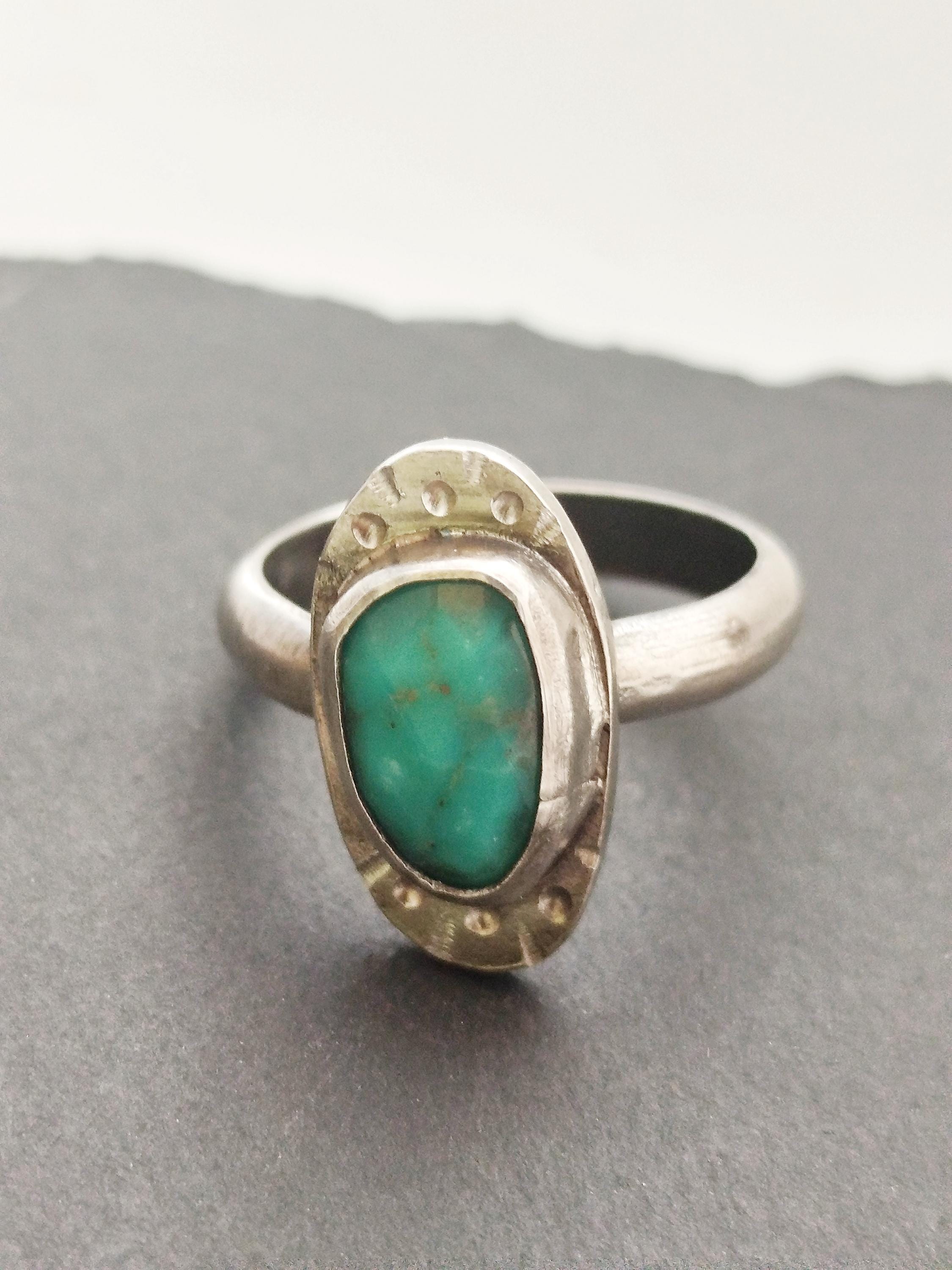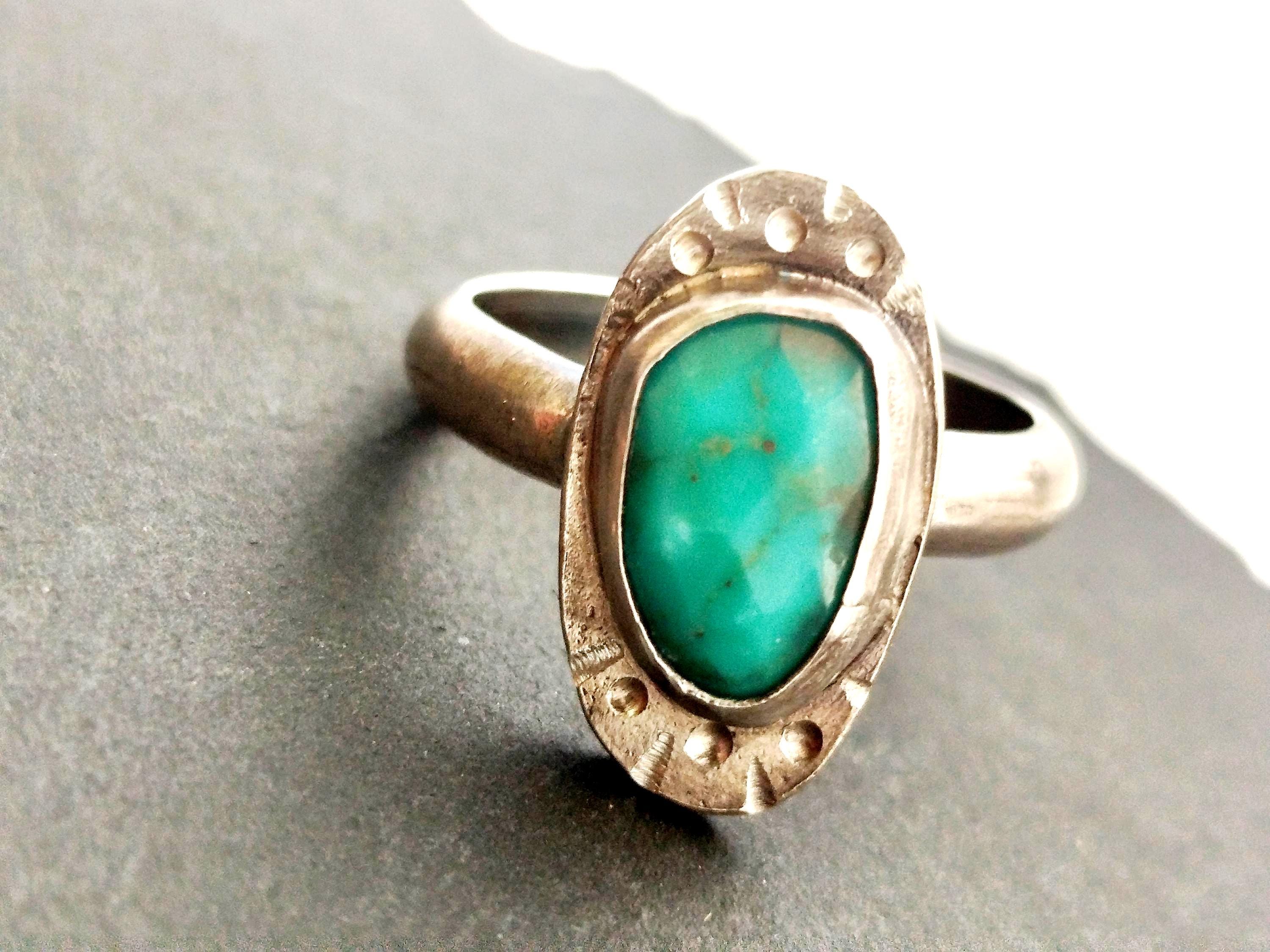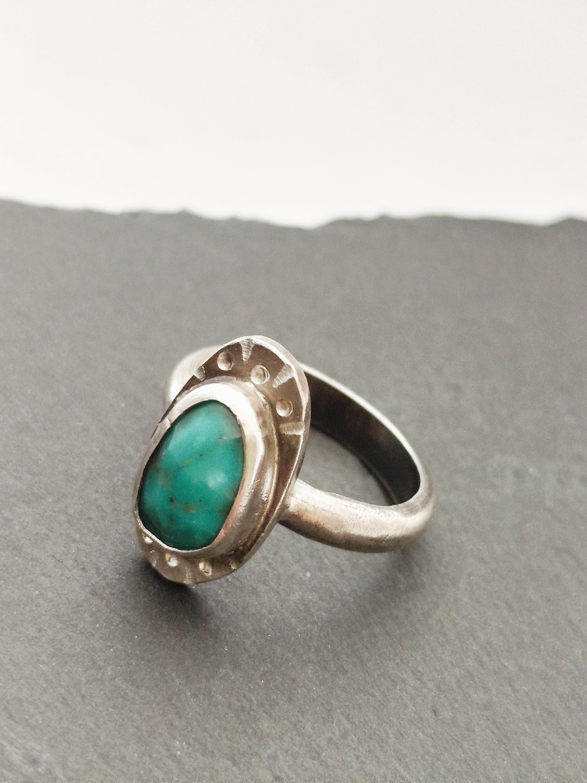 Handmade Silver Ring with Natural Turquoise, December Birthstone for Protection, Serenity and Spiritual Strength