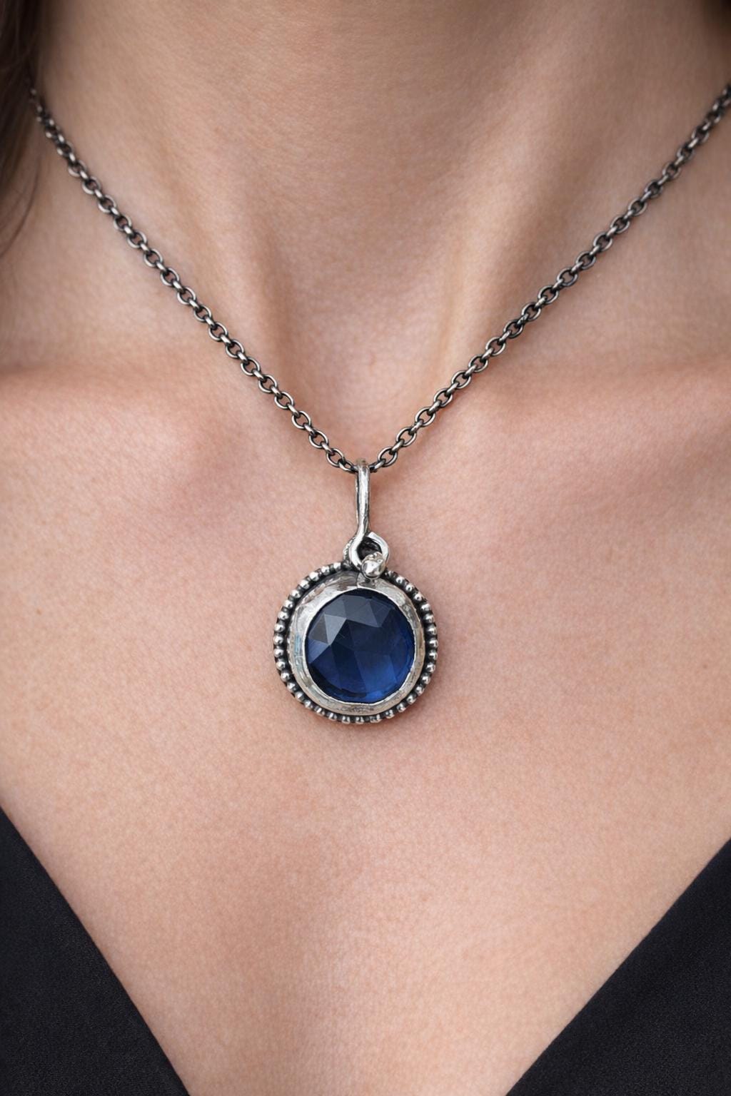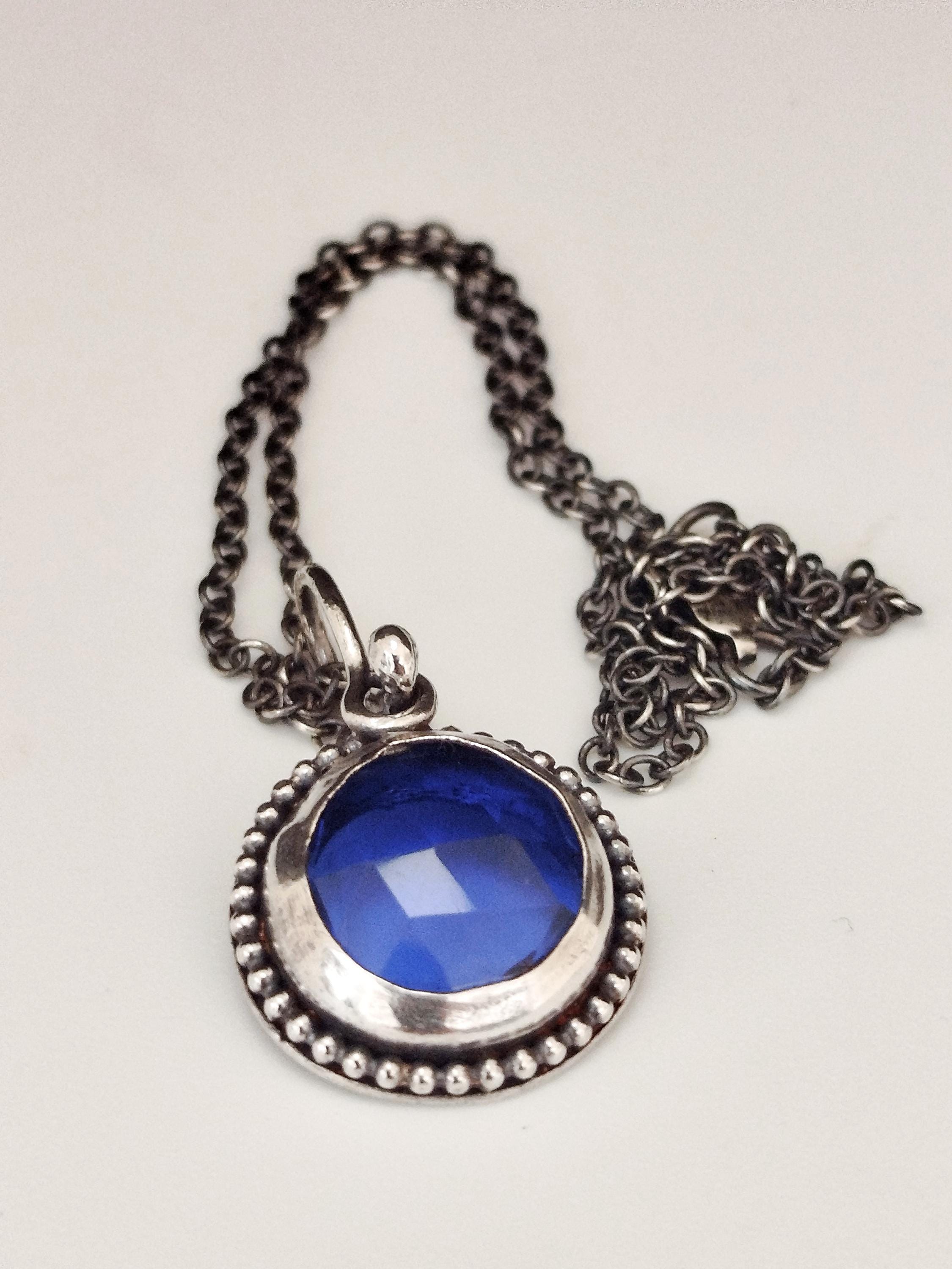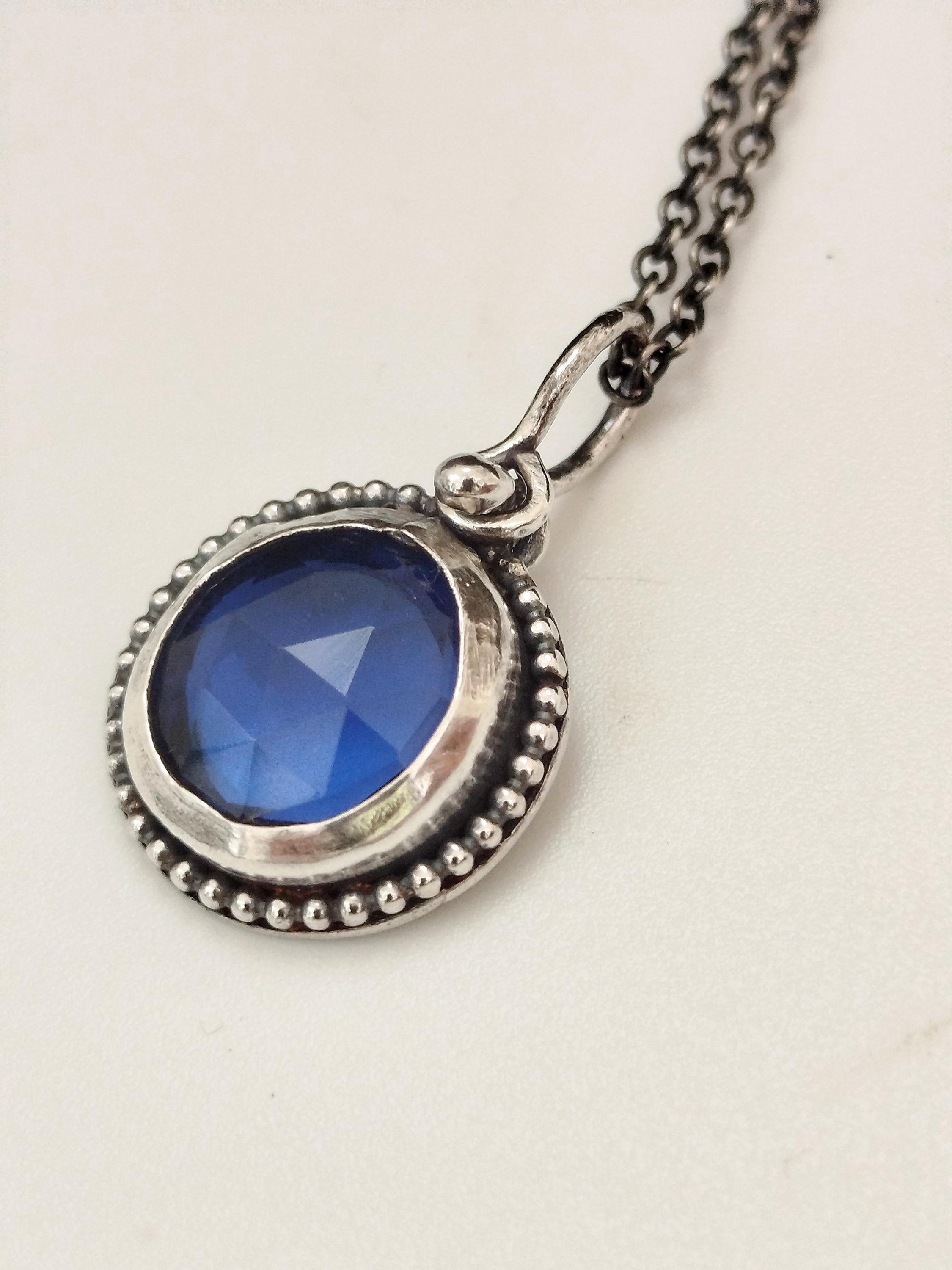 925 sterling silver necklace with lab‑created blue sapphire cabochon – handmade artisan jewelry
