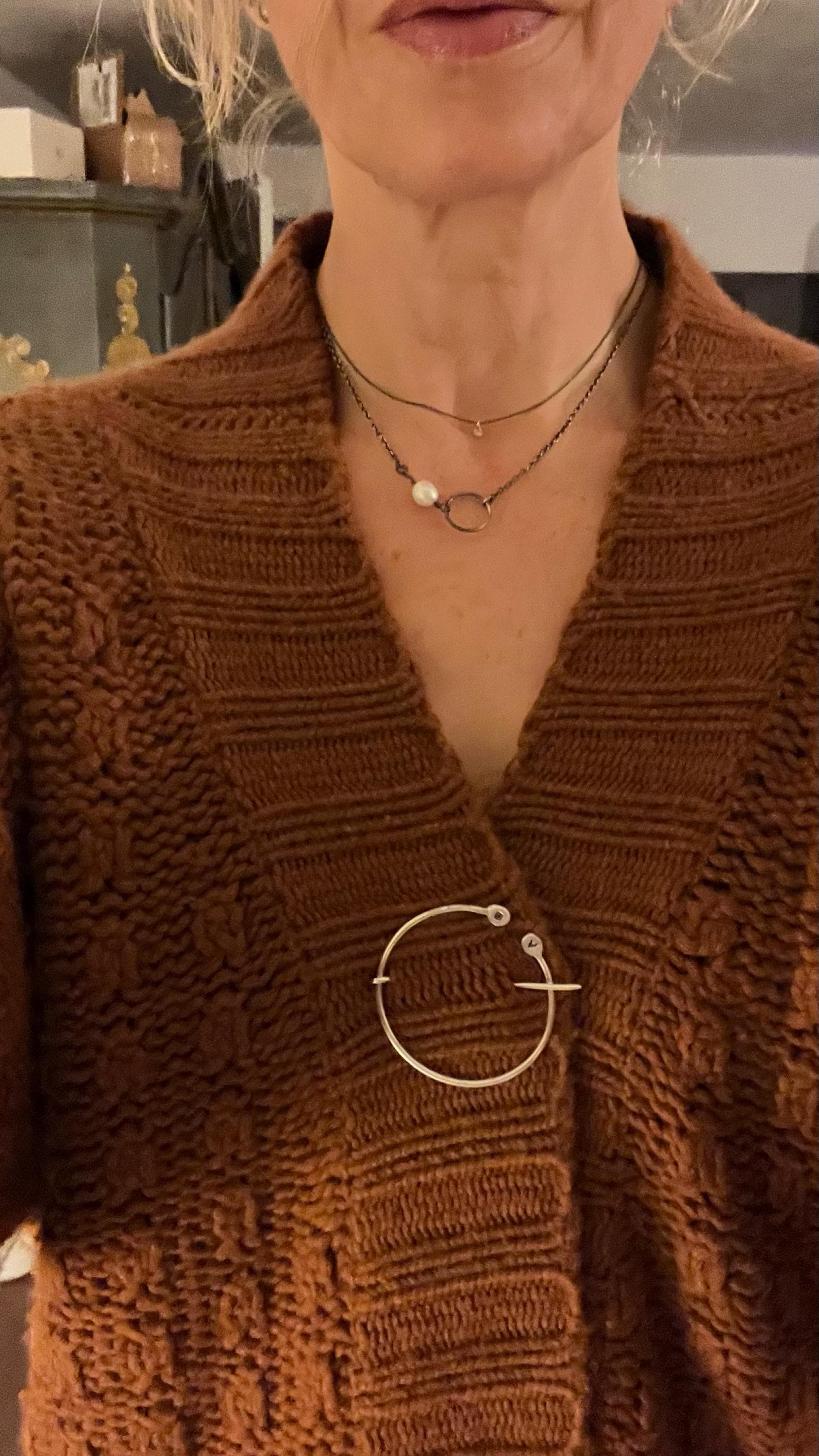 This brooch is made with 2.5mm thick sterling silver wire, hand forged and hand stamped.